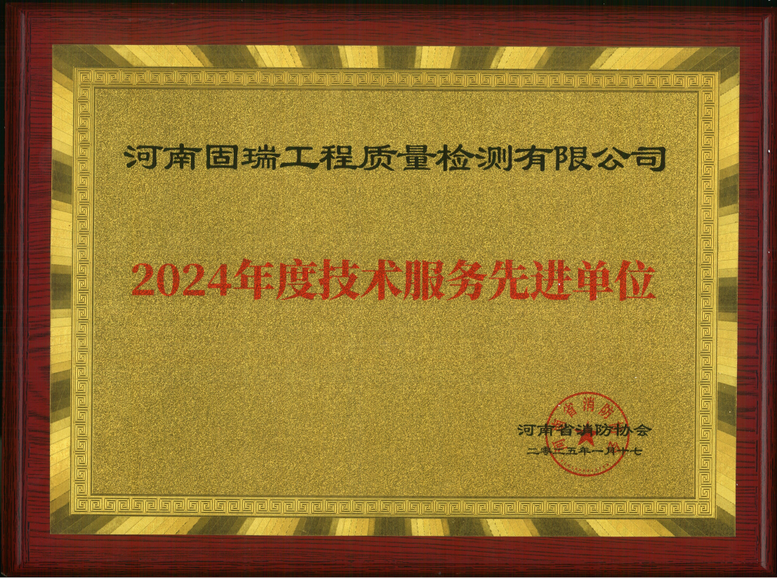 熱烈祝賀河南固瑞工程質(zhì)量檢測有限公司榮獲河南省消防協(xié)會2024年度技術(shù)服務先進單位!!!