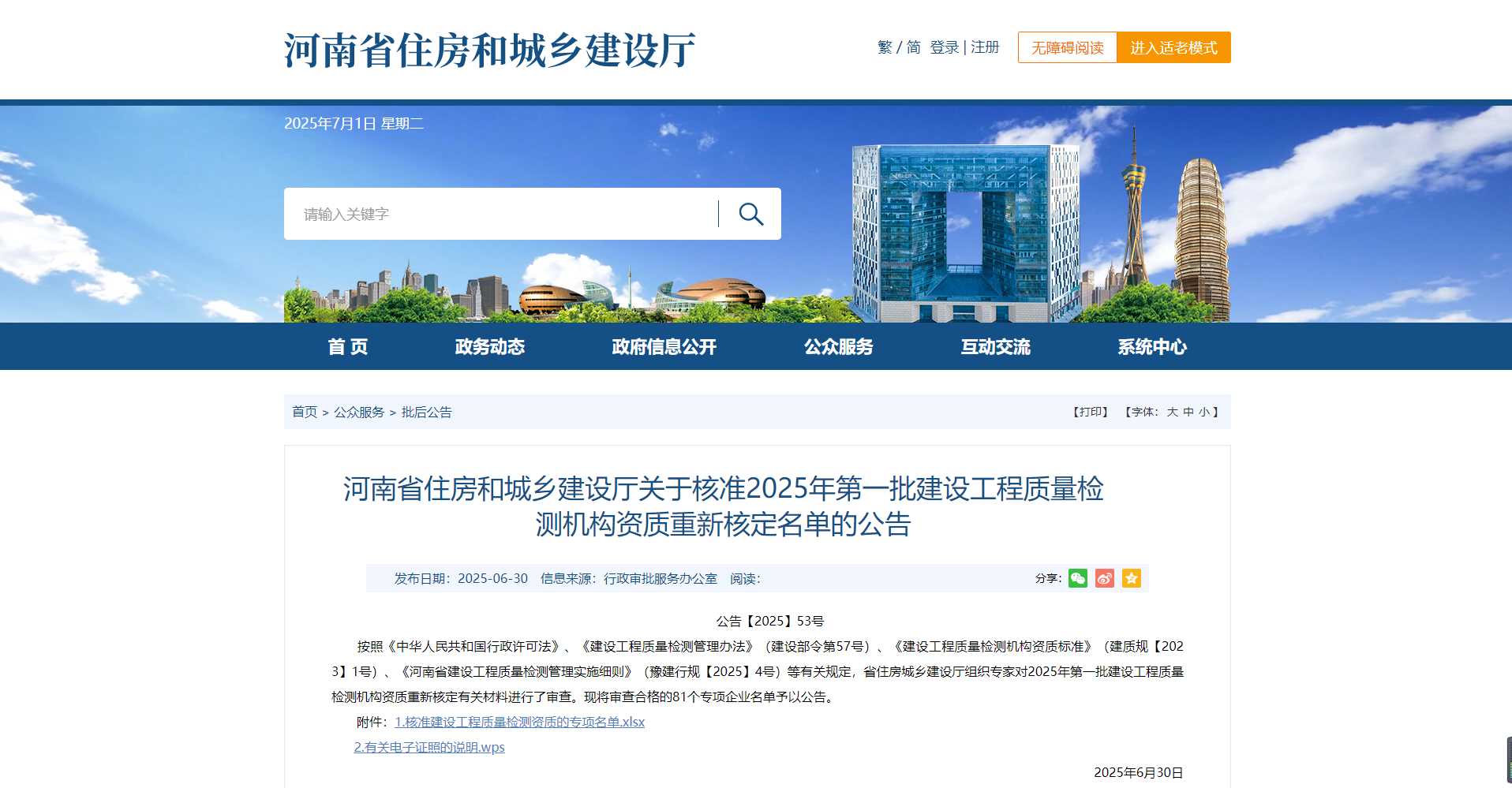 熱烈祝賀我司通過河南省住建廳2025年第一批建設工程質(zhì)量檢測機構(gòu)資質(zhì)重新核定?。?!